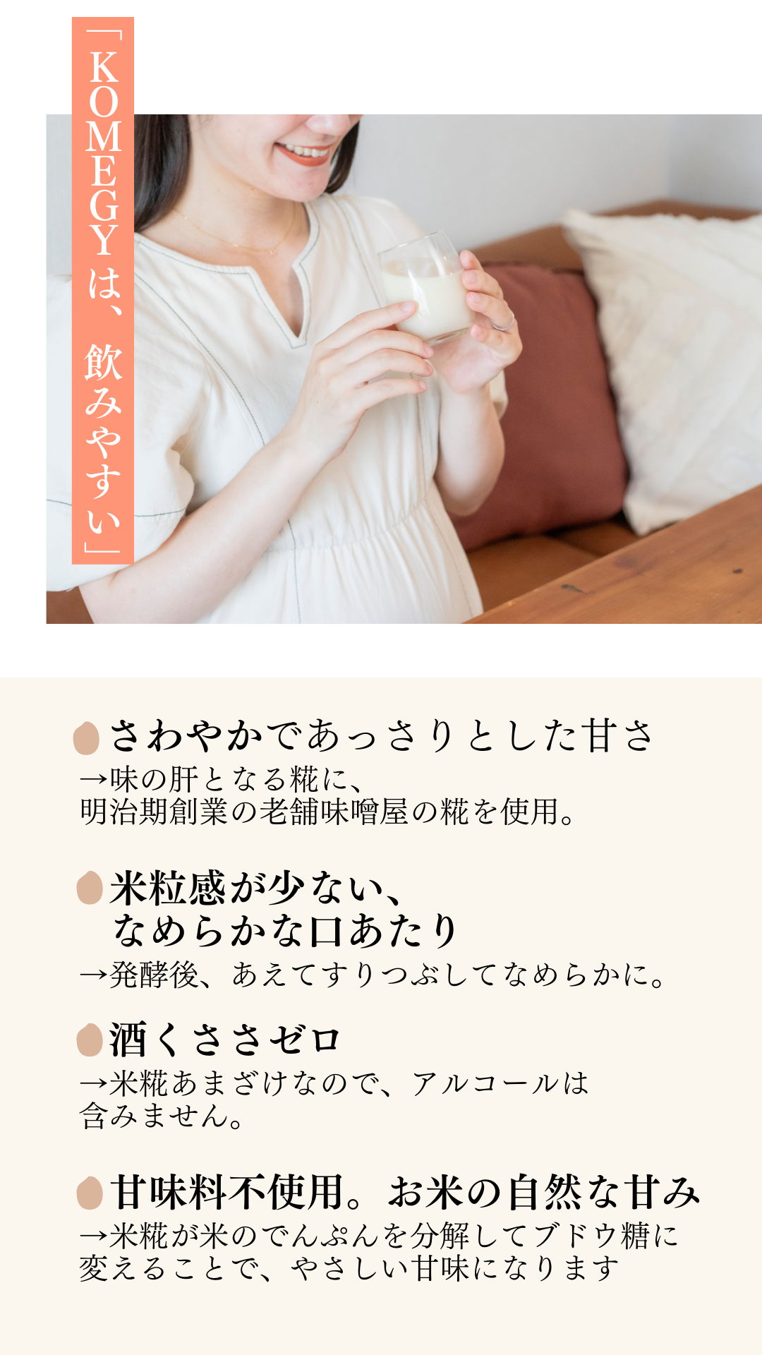 KOMEGYは、腸活をより手軽に楽しめる米糀あまざけ。