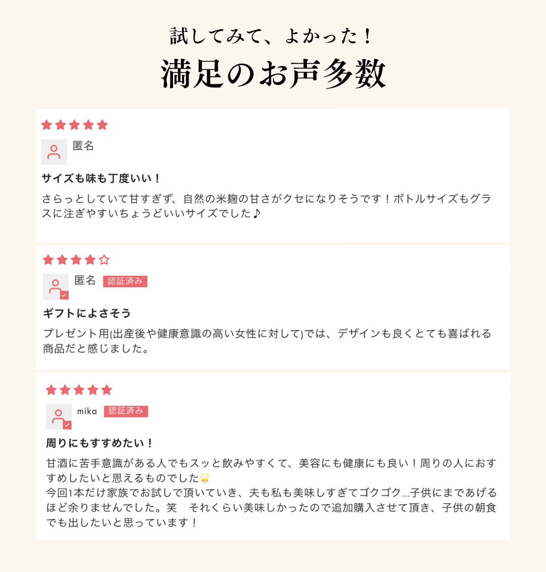 「飲む点滴」とも言われるあまざけ。初めは美容のためにと思って毎朝飲むことにしました。その中で色んな商品を試し、成分や味にこだわるようになりました。